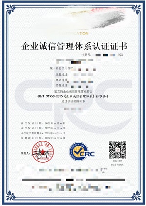 GB/T 31950诚信管理体系认证证书