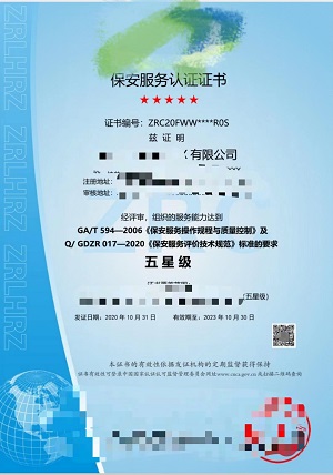 保安服务认证(五星)