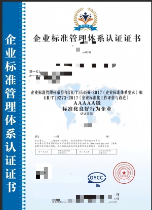 企业标准管理体系认证证书